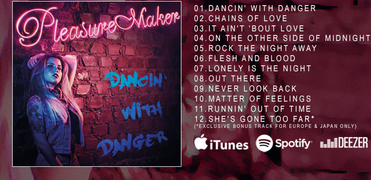 After a seven year break, the band reunited in 2017 to record their third album, “Dancing With Danger”. It features Alex Meister as a producer and brings Herinque Canale “Baboom” on mixing and mastering. The new CD presents Pleasure Maker on its best!! It has contagious tunes that sound colorful and vibrant, just like an 80’s Hard Rock band should. And better yet, they do not sound old fashioned at all.